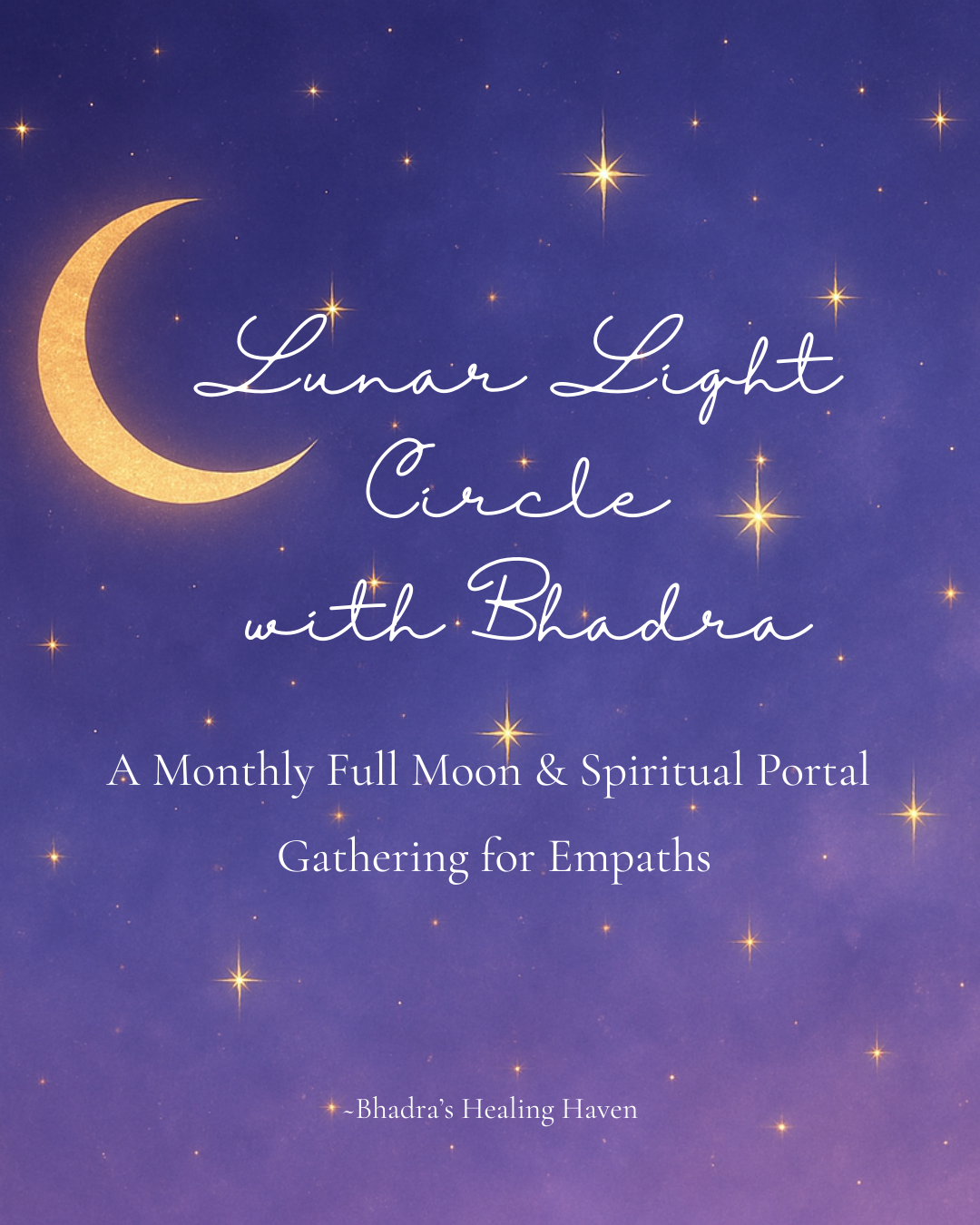 Each 90-minute session is lovingly guided by Bhadra and is tailored to the unique energy of the moon or portal. You’ll be held in a warm, supportive space as you release what no longer serves, receive divine insight, and anchor into your light.